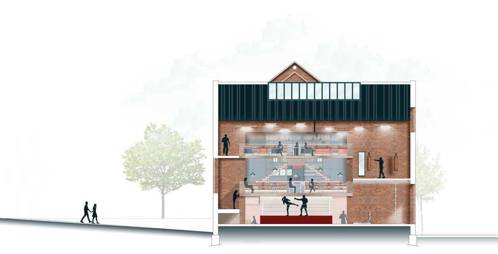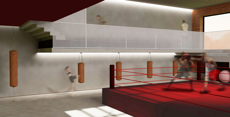 Création d'un complexe éducatif mettant en lumière le lien entre la nutrition et la pratique sportive. Punchmunch mêle l'art culinaire et le noble art autour d'un restaurant et d'un club de boxe. L'espace se construit autour des jeux de regard créant ainsi la communication et instaure la contemplation.